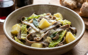 山岳地方で生まれた料理とされ、保存性と栄養価を重視した食文化の中で発展した名称である。